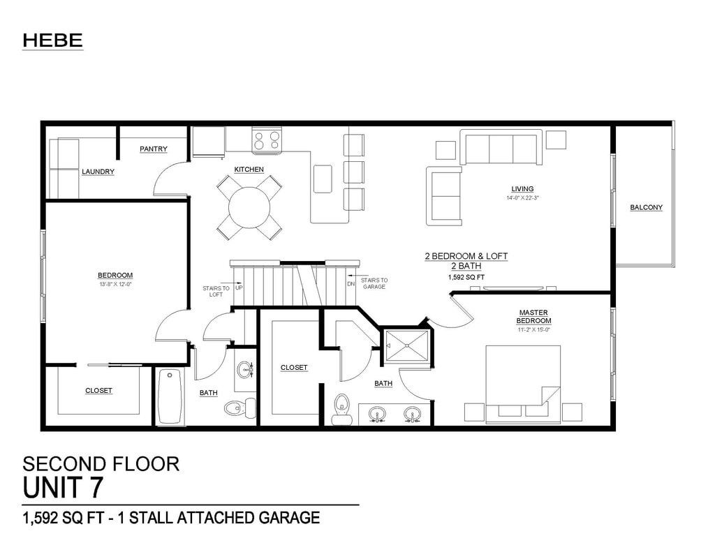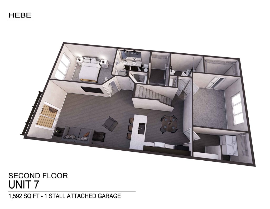 2 bed, 3 bath w/ loft. W/ 1 stall attached garage 2nd & 3rd floor