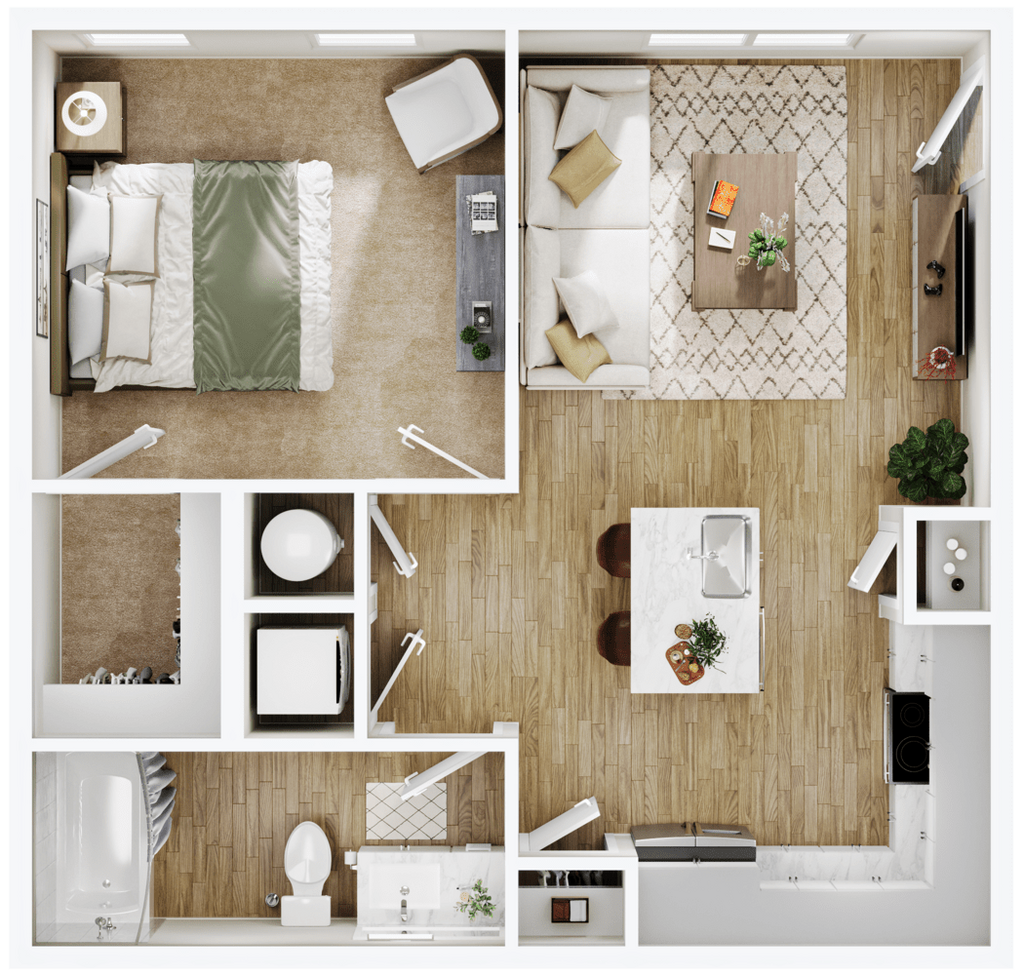 Apartment Model: A4 - 1 Bedroom / 1 BathFrom $1,3381 Bedroom, 1 Bath, 745 sq ftAvailable Now![]()