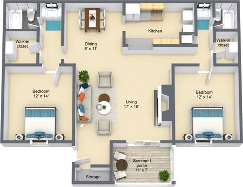 1 Bed, 1.5 Baths, 972 sq ftAvailable NowLargest 1 BedroomThis is the largest 1 Bedroom at this PropertyModel Gallery