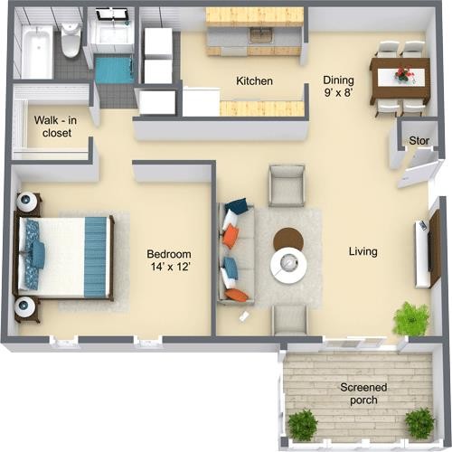 1 Bed, 1 Bath, 544 sq ftAvailable NowModel Gallery