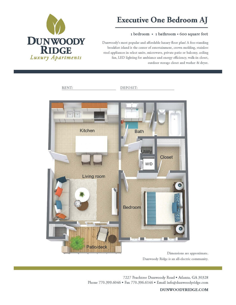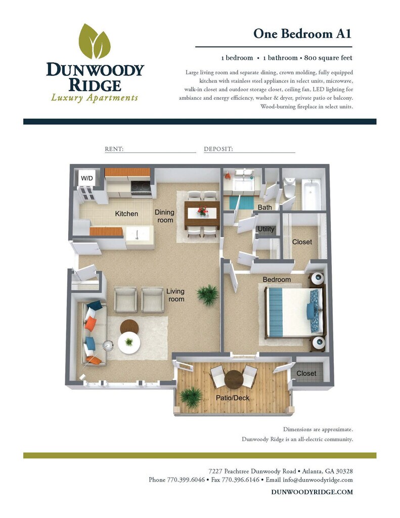 If you are looking for a convenient, quiet location in Dunwoody, and your floor-space requirements are flexible, we invite you to take a look at our very popular and affordable executive one-bedroom floor-plan - the undisputed best value in Dunwoody! And if your lifestyle requires more spacious surrounds, we offer larger one and two-bedroom apartments to fit your needs. All floorplans are Georgia Good Cents approved and come complete with a washer & dryer and a microwave oven! Dunwoody Ridge also offers prompt and professional onsite maintenance; an elegant gated entryway to beautifully landscaped grounds; a sparkling swimming pool; a Precor Commercial cardio fitness center; optional private garages and storage; and covered parking. Please take a few minutes to browse our floor plans and virtual tours. Then call or visit today and let one of our helpful staff personally demonstrate how value, charm and convenience are all right here…at Dunwoody Ridge!