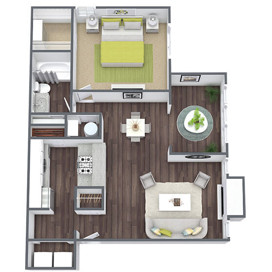 Apartment Model: A3 | BirchFrom $1,2631 Bedroom, 1 Bath, 770 sq ftAvailable Now![]()