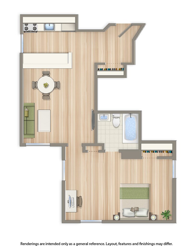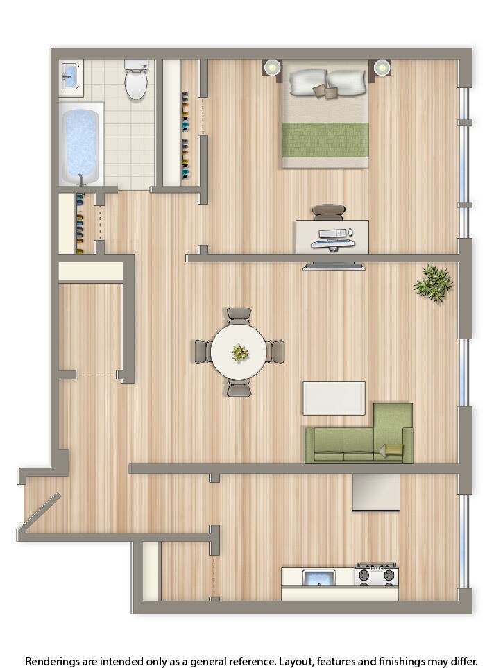 1 Bed, 1 Bath, 576 sq ftModel Gallery