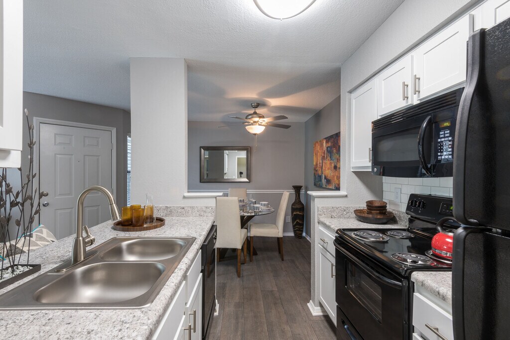 - Chef Style Kitchen with Black Appliances & Granite