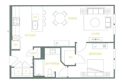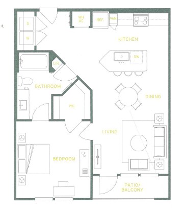 Apartment Model: A1From $1,2991 Bedroom, 1 Bath, 736-754 sq ftAvailable Now![]()