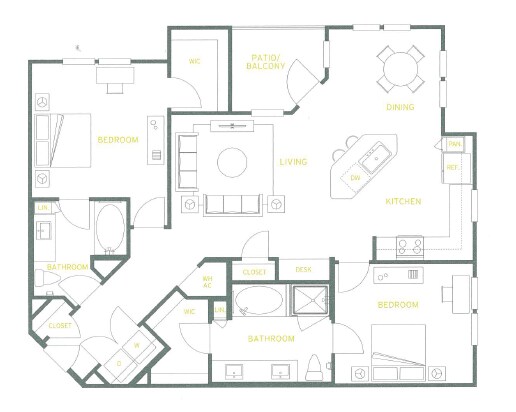 Apartment Model: A2From $1,4361 Bedroom, 1 Bath, 842-868 sq ftAvailable Now![]()