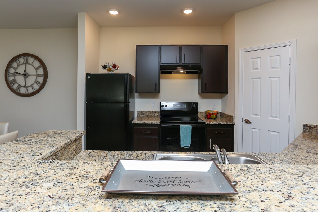 - Island style kitchens with granite countertops