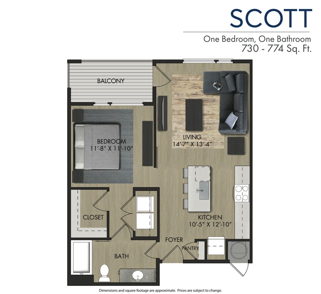 1 Bed, 1 Bath, 730-774 sq ftAvailable Oct 31Model Gallery