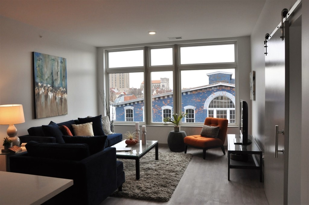 Located just a few blocks from the Roebling Suspension Bridge, Duveneck Square is nestled in the heart of historic Covington. Our luxury apartments for rent in downtown Covington, Kentucky, feature expansive floor plans, high ceilings, and unparalleled access to the city. Before you start your day, fit in a workout in the state-of-the-art fitness center, complete with free weights and circuit training equipment. Take advantage of short commutes to top local employers like Fidelity Investments and St. Elizabeth Healthcare. In the evenings, walk your dog along the wooded trails at Devou Park or meet your friends for happy hour at Ripple Wine Bar or Braxton Brewing Company. The city is yours to explore at Duveneck Square.