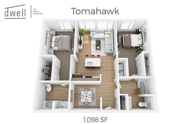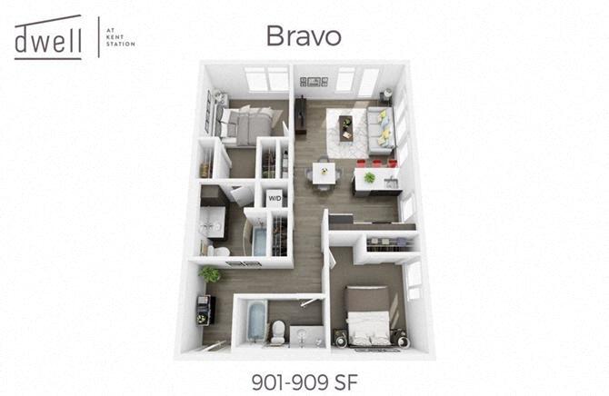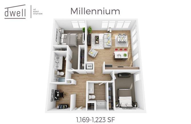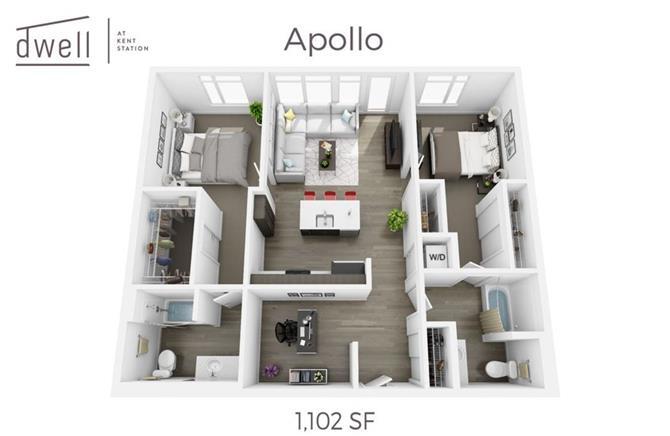 Dwell At Kent Station Apartments offers Studio to 2 Bedroom apartments starting from $1,519 and having 448–1,169 sq ft. Here is the current pricing and availability: