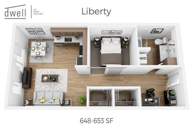 Studio to 2 Bedroom Apartments at Dwell At Kent Station Apartments currently range from $1,519 to $2,348