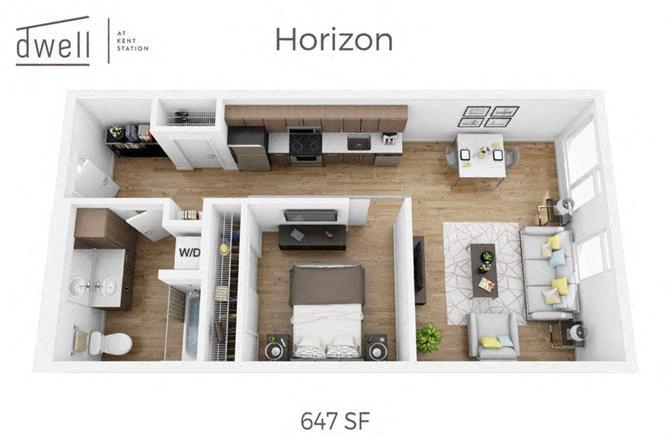 At the corner of luxury and convenience, Dwell is located in direct proximity to shopping, transit, dining and all the other opportunities for fun at Kent Station. Large two bedrooms, open design one bedrooms, and appropriate sized studios, whatever your need, Dwell has an apartment build for you.