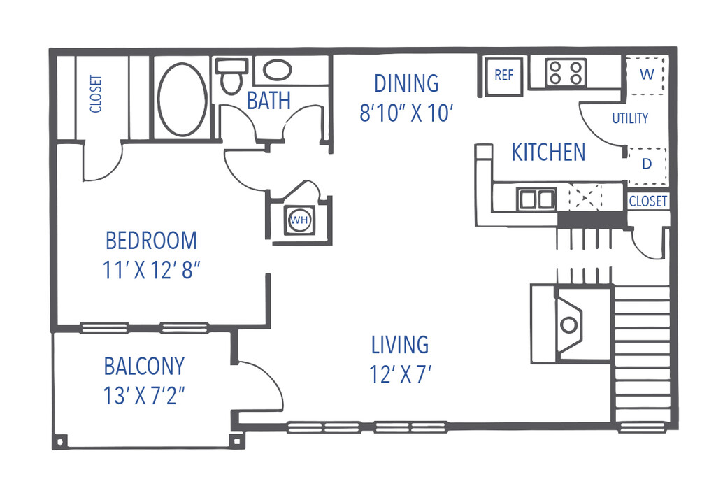 1 Bed, 1 Bath, 701 sq ftAvailable NowModel Gallery