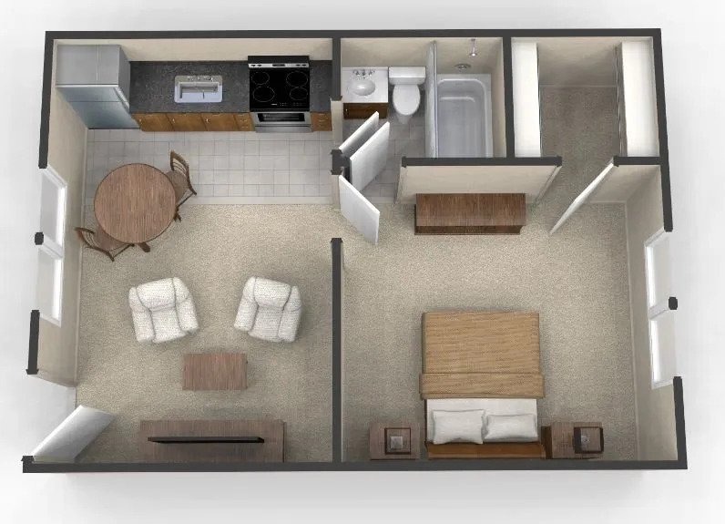 1 Bed, 1 Bath, 450 sq ftModel Gallery