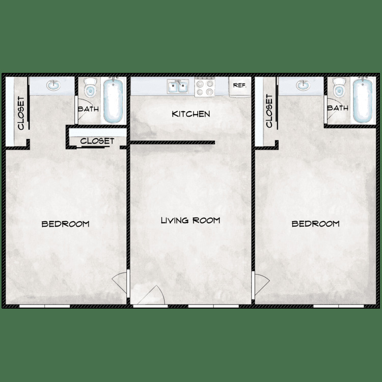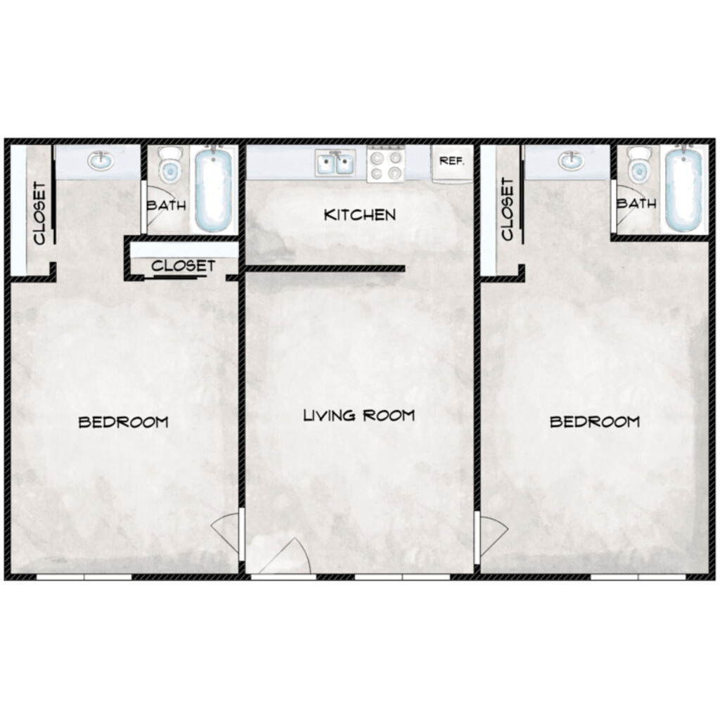 One Bedroom One Bath - Floorplan 2 2 Bedrooms