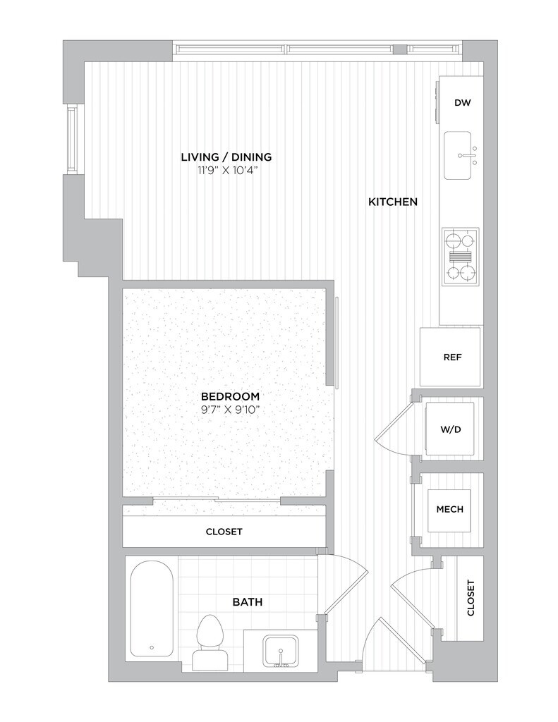 Studio, 1 Bath, 436 sq ftLargest StudioThis is the largest Studio at this PropertyModel Gallery