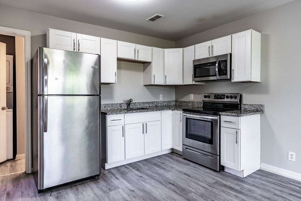 Discover this beautifully renovated 2-bedroom, 1-bath apartment featuring an open-concept kitchen with sleek white cabinetry, stainless steel appliances, and stylish granite countertops. The spacious living area boasts contemporary flooring and ample natural light, creating a warm and inviting atmosphere. Located in a well-maintained community with easy access to major highways, shopping, and dining, this apartment offers both comfort and convenience. Enjoy the peaceful surroundings while still being just minutes from the city. Don’t miss out on this fantastic rental opportunity—schedule a tour today!