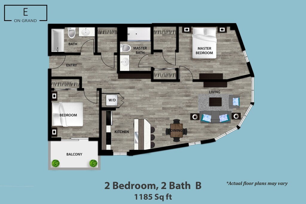E On Grand offers Studio to 2 Bedroom apartments starting from $1,650 and having 481–1,218 sq ft. Here is the current pricing and availability: