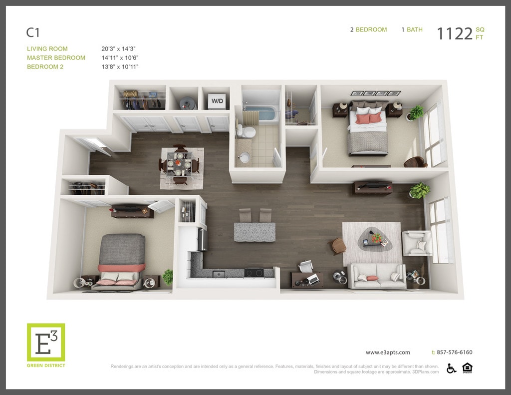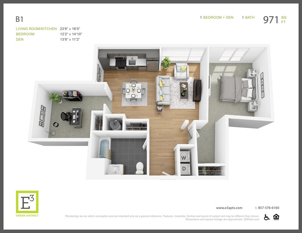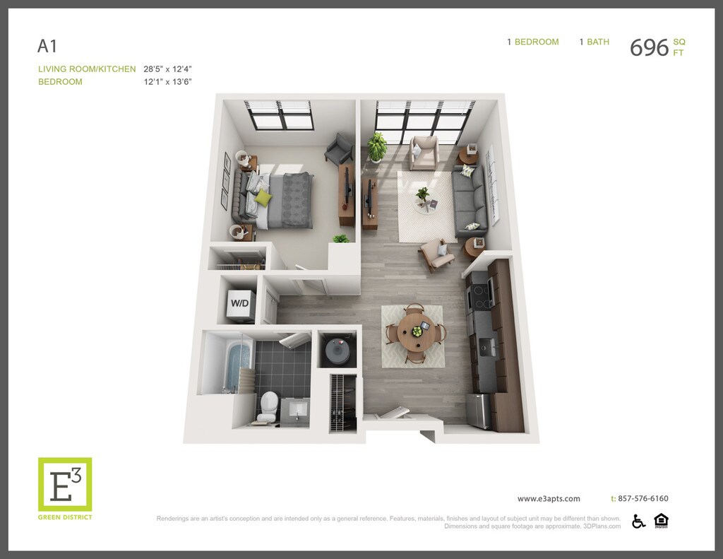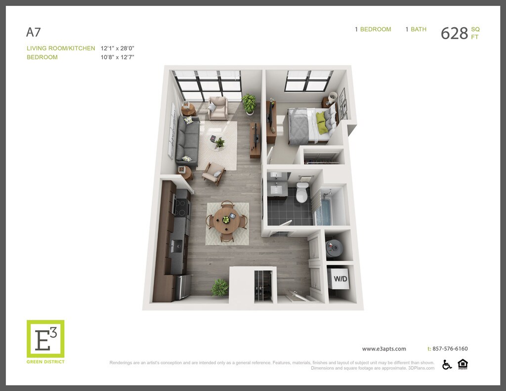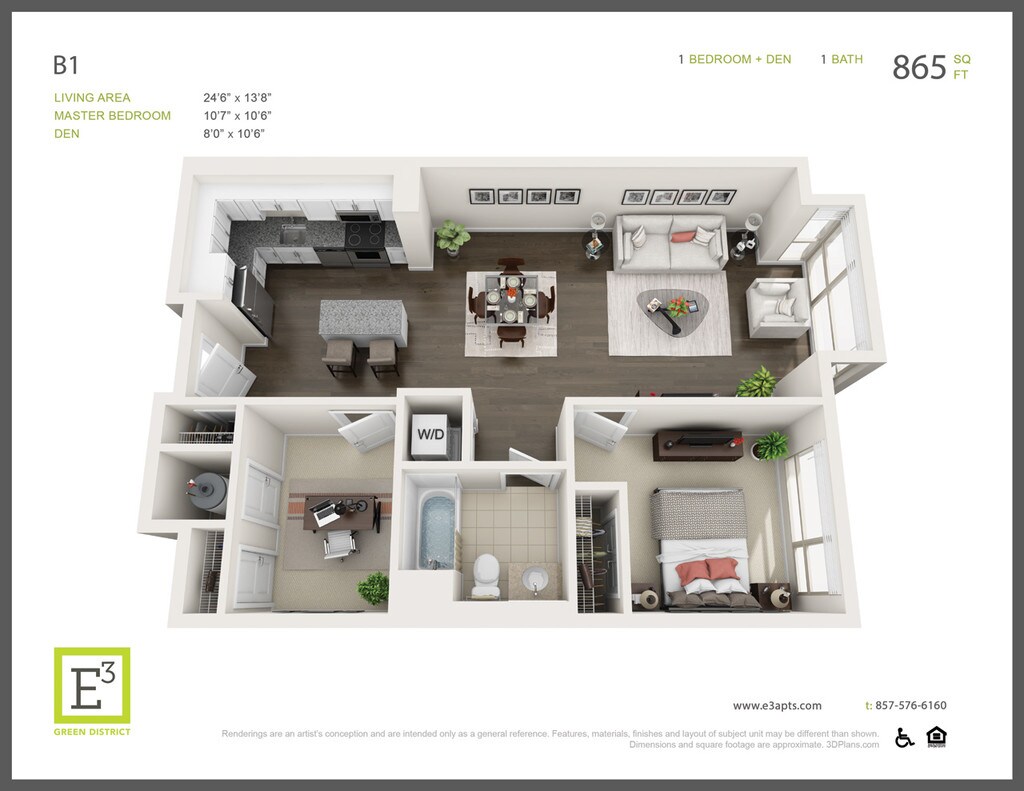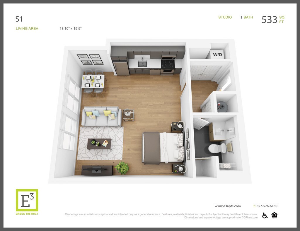 E3 Apartments perfectly combines eclectic Allston with luxury living. Choose between Eco, Element, and Edge as each building has its own vibe and interior finishes. Walk to the green line, shops, and more. From our roof decks to work spaces, E3s atmosphere is cool, fun, and made with you in mind. Eco living. On the edge. In your element.