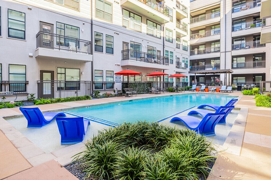 Prominent with bold street art and modern design, E6 Apartments offer a mid-rise community amongst eccentric east Austin. Available in two distinct interior styles, these pet-friendly apartments boast open-concept floor plans with high-end details. Relax in a newly constructed home with stained concrete or wood-style floors and stunning views of downtown. State-of-the-art amenities provide shared spaces inspired by the city’s unique culture. Hang poolside in a private cabana, admire the view of the city from the skyline terrace, or head down to the ground-level shops and restaurants. Contact E6 to schedule a tour through the community.