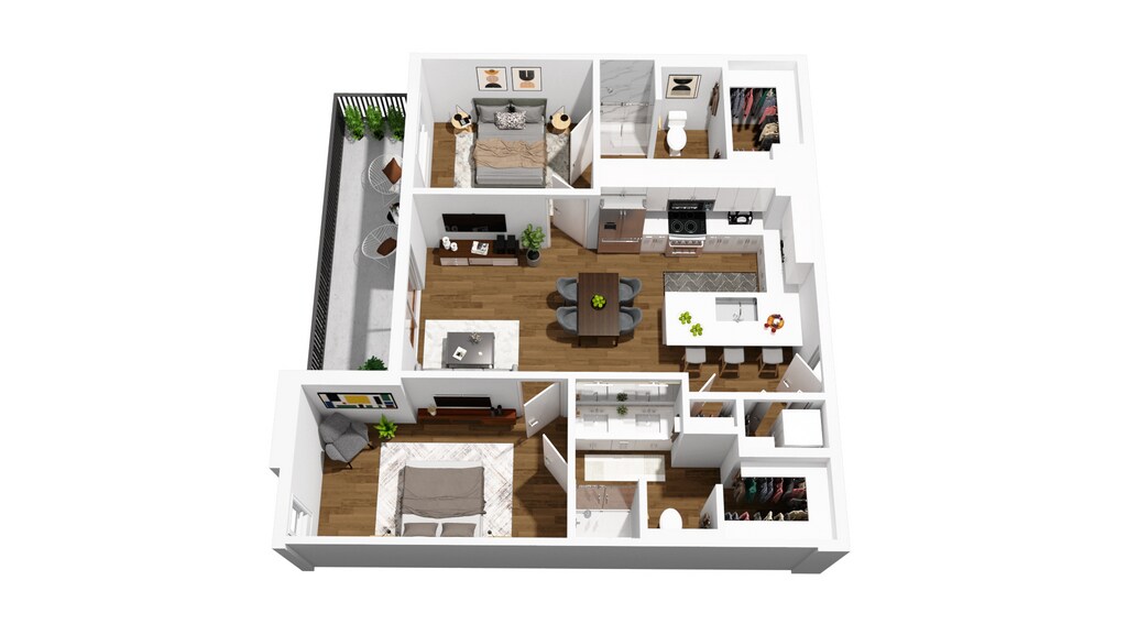 One Bedroom, Two Bathroom - Floorplan 1 2 Bedrooms