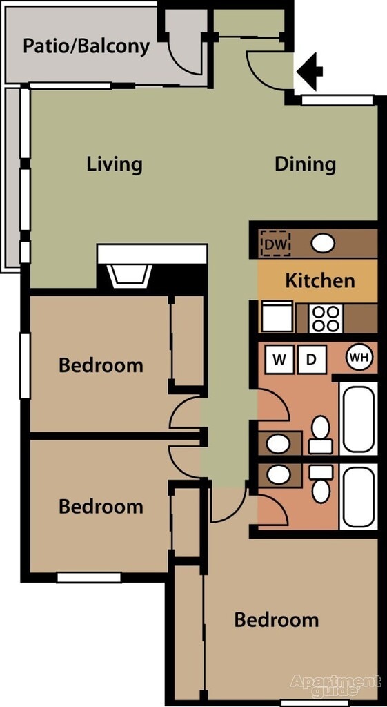 Apartment Model: Three Bedroom Two BathCall For Rates3 Bedroom, 2 Bath, 1115 sq ftUnavailable![]()