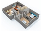 Apartment Model: 2 Bed 1 BathFrom $1,6502 Bedroom, 1 Bath, 860 sq ftAvailable NowFloor plans are artist's rendering. All dimensions are approximate. Actual product and specifications may vary in dimension or detail. Not all features are available in every rental home. Please see a representative for details.