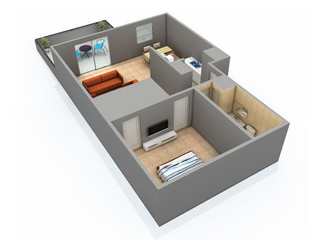 1 Bed, 1 Bath, 648 sq ftModel Gallery