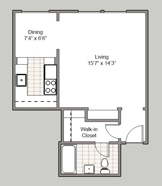 Studio, 1 Bath, 470 sq ftAvailability Details