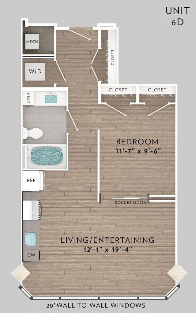 6E 1 Bed 1 Bath - Floorplan 1 Apartment Unit: 0202Apartment Model: 6E 1 Bed 1 Bath$2,1761 Bedroom, 1 Bath, 670 sq ftAvailable Now10D 1 Bed 1 Bath