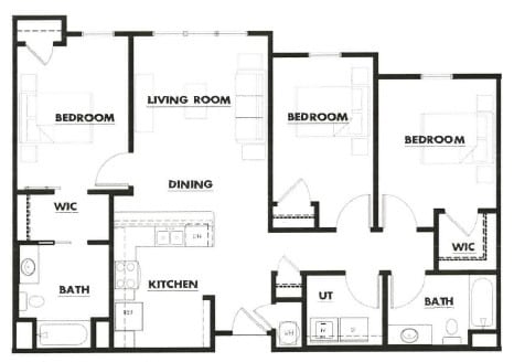 Two Bedroom - 60% Tax Credit - Floorplan 4 3 Bedrooms