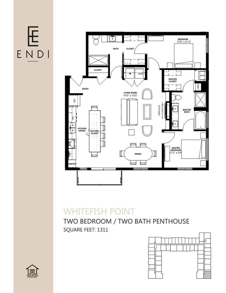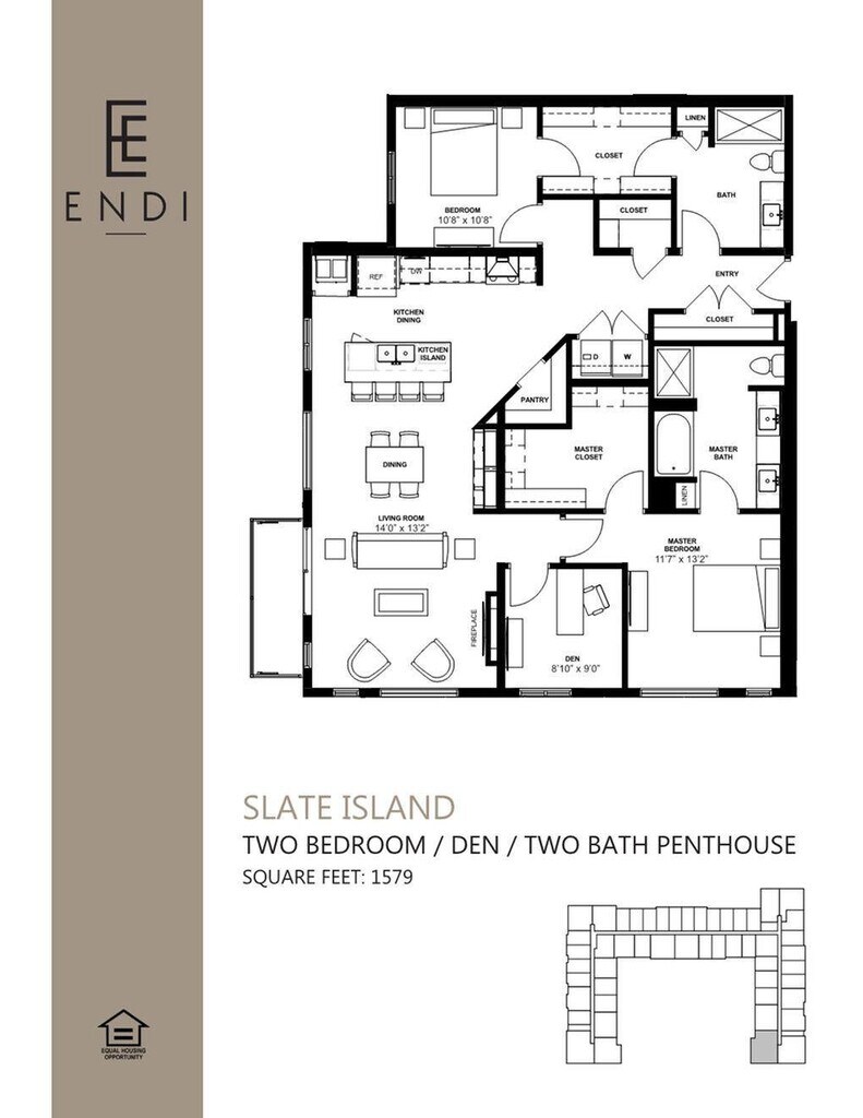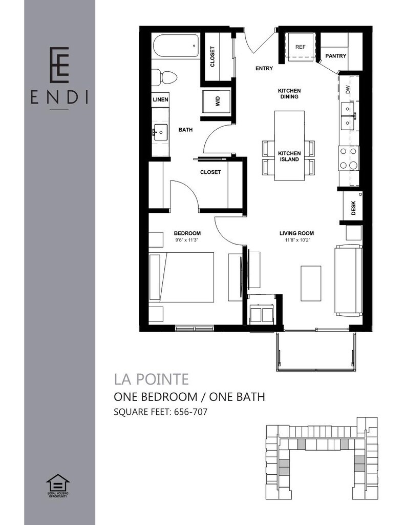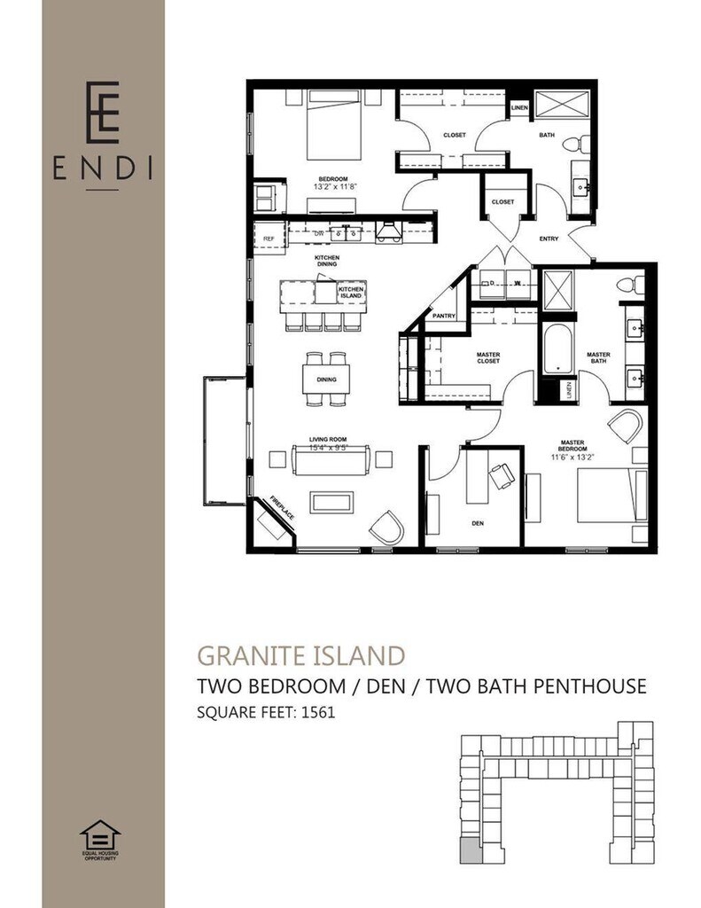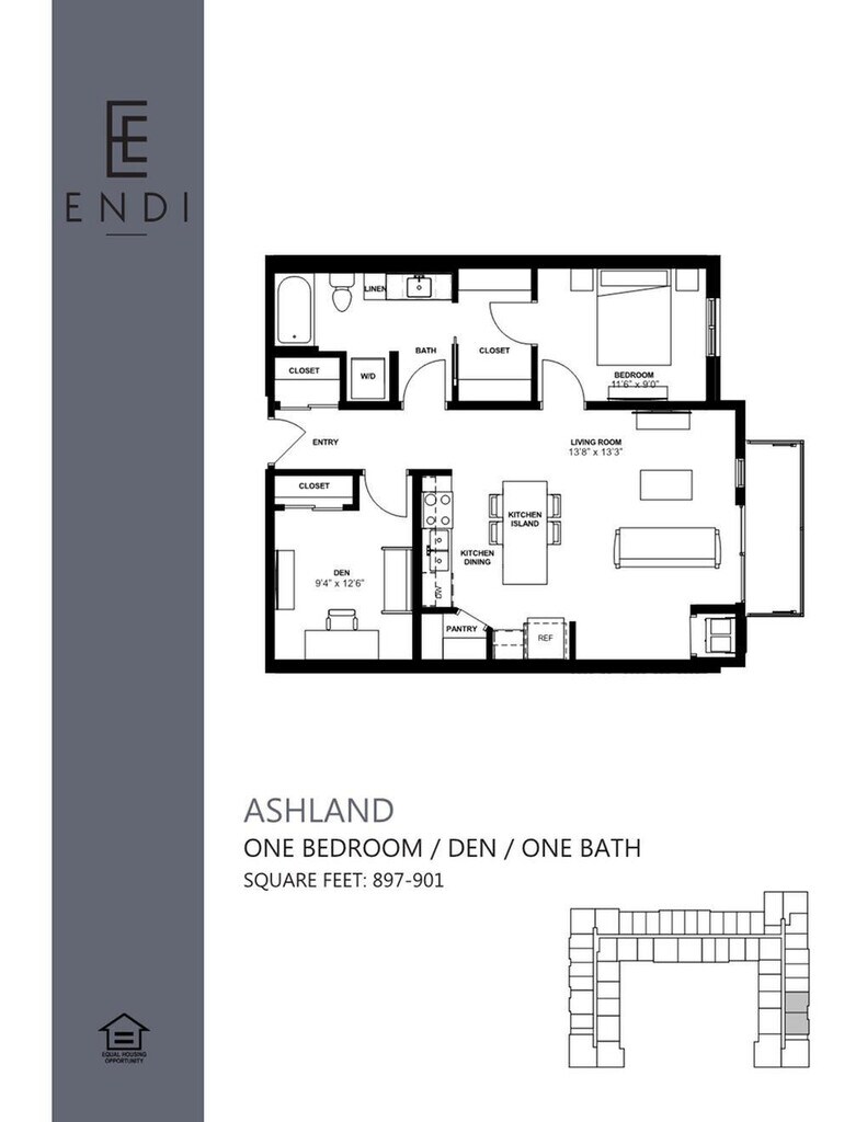 ENDI Plaza offers Studio to 3 Bedroom apartments starting from $1,720 and having 594–3,497 sq ft. Here is the current pricing and availability: