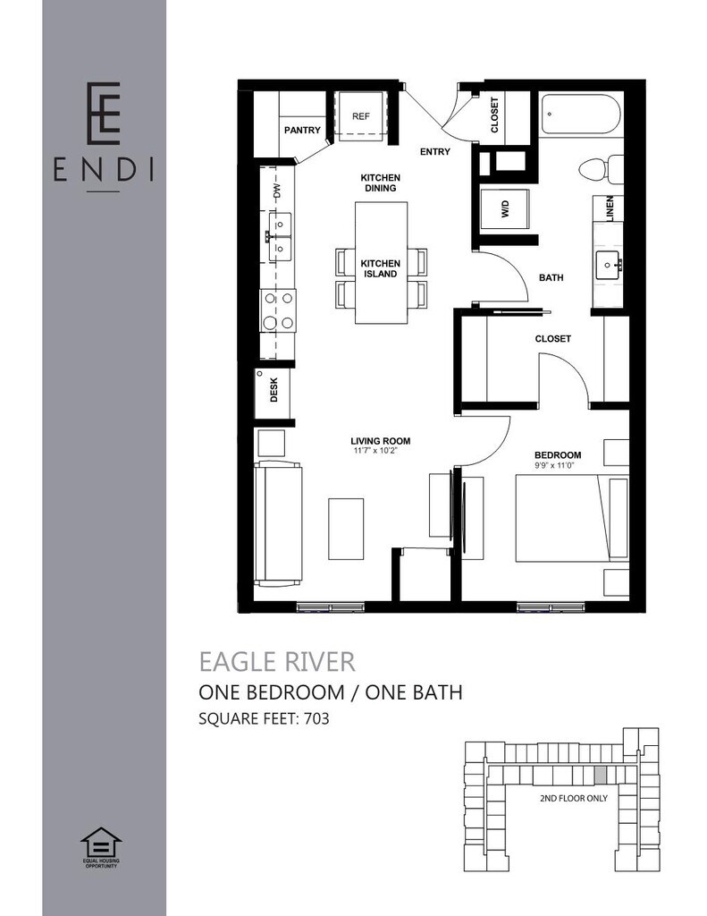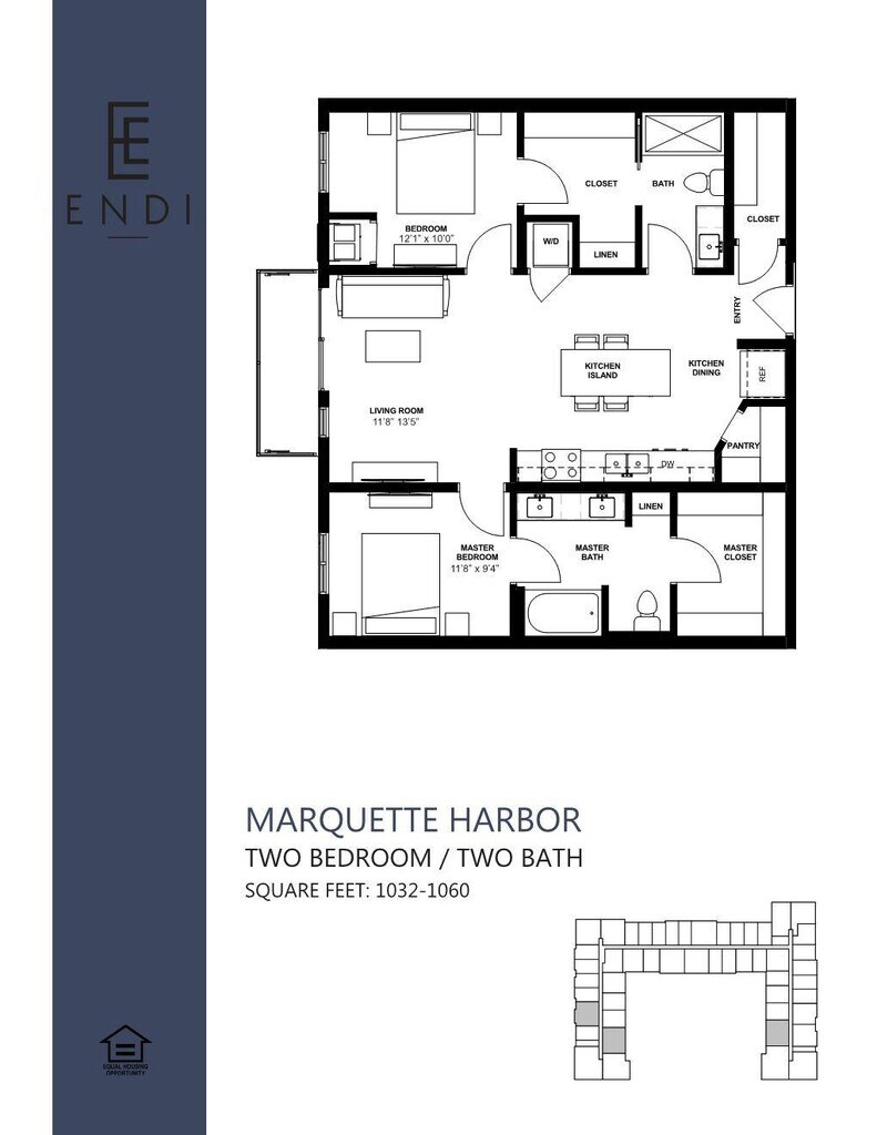 Endi Apartments offers modern, pet-friendly living in the heart of Duluth with thoughtfully designed studio, one-, two-, and three-bedroom floor plans. Each home features contemporary finishes, open layouts, in-home laundry, and large windows that maximize natural light. Residents enjoy access to elevated community amenities including a fitness center, stylish lounge areas, controlled access, and convenient parking. Located near Duluths vibrant dining, shopping, and waterfront attractions, Endi Apartments blends comfort, convenience, and modern design for a truly exceptional living experience.