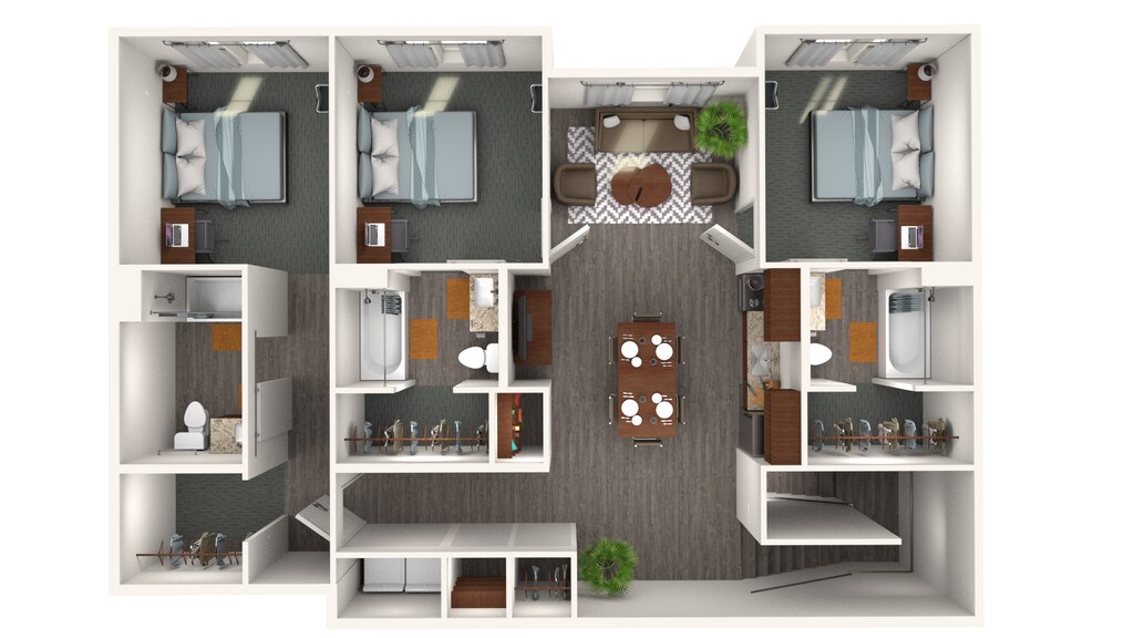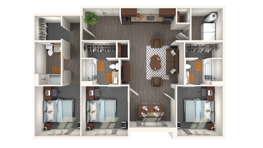 EPOCH is Clemson's newest student living community with all inclusive rates is located minutes from campus, on Lake Hartwell, and across the street from Hartwell Village. Life on Purpose. From our fully furnished apartments with state-of-the-art amenities, to our game-changing outreach opportunities and activities, EPOCH was built with purpose and backed by service that puts student success above all else. The result? An entire community that cares more, does more, and, ultimately, lives more. Studying. Hanging with friends. Binge-watching your favorite shows. A lot happens in your space and our cottages, townhomes, luxury flats, and brownstone floor plans are thoughtfully designed for it all. So whether you’re looking to live with your whole crew (check out cottage pods), for rooms with a view, or just central living spaces that better vibes with your tribe, we get you and we’ve got you.