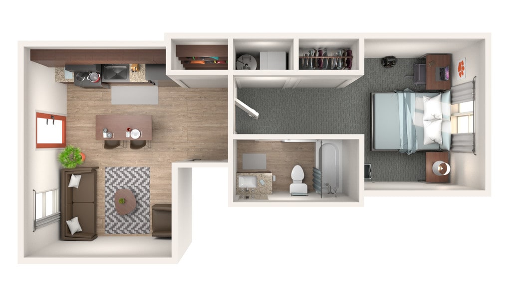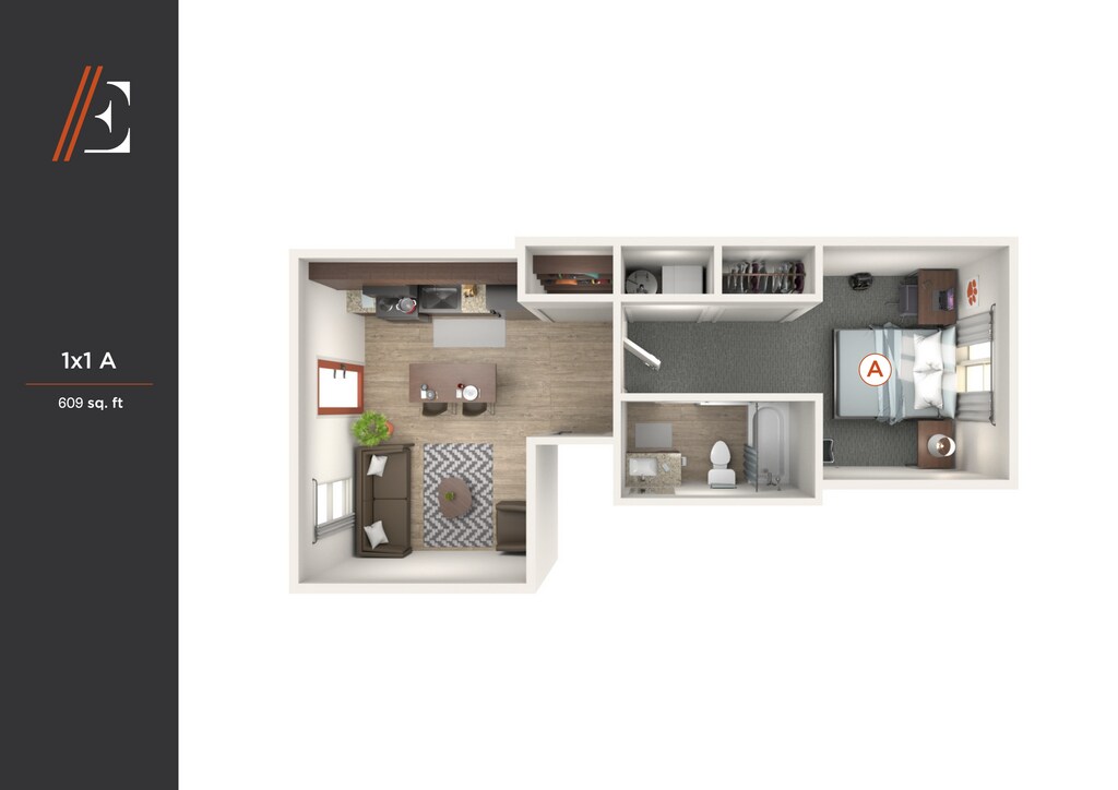 1 Bed, 1 Bath, 609 sq ftAvailable August 14, 2026Model Gallery