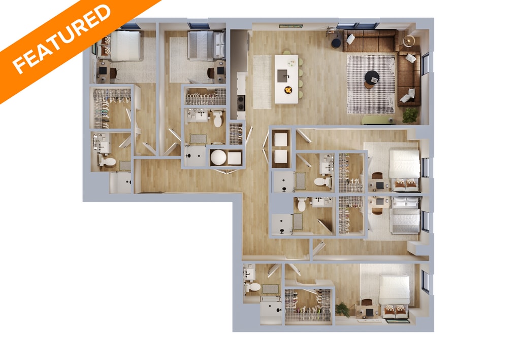 3BR/3BA - C1 - Floorplan 1 Apartment Unit: Standard BathroomApartment Model: 3BR/3BA - C1$1,6603 Bedroom, 3 Bath, 987 sq ftAvailable August 7, 2026Apartment Unit: VIP - Standard BathroomApartment Model: 3BR/3BA - C1$1,7603 Bedroom, 3 Bath, 987 sq ftAvailable August 7, 20264 Bedrooms
