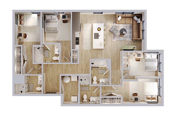 Apartment Model: 4BR/4BA - D2From $1,4354 Bedroom, 4 Bath, 1203 sq ftAvailable August 7, 2026![]()