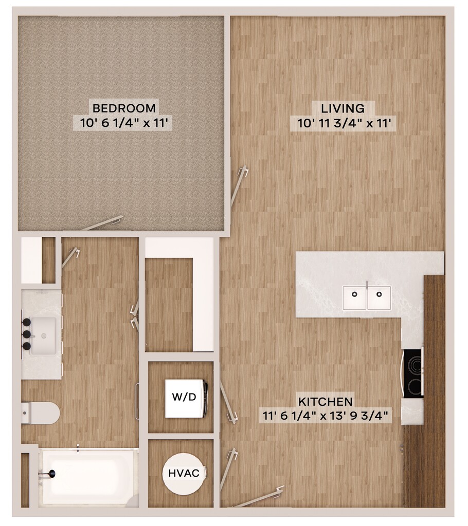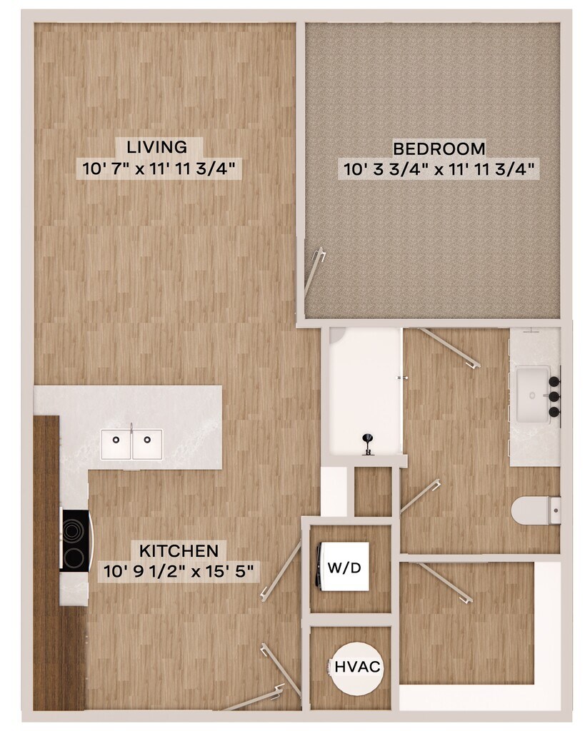 Studio, 1 Bath, 450-465 sq ftAvailable NowModel Gallery