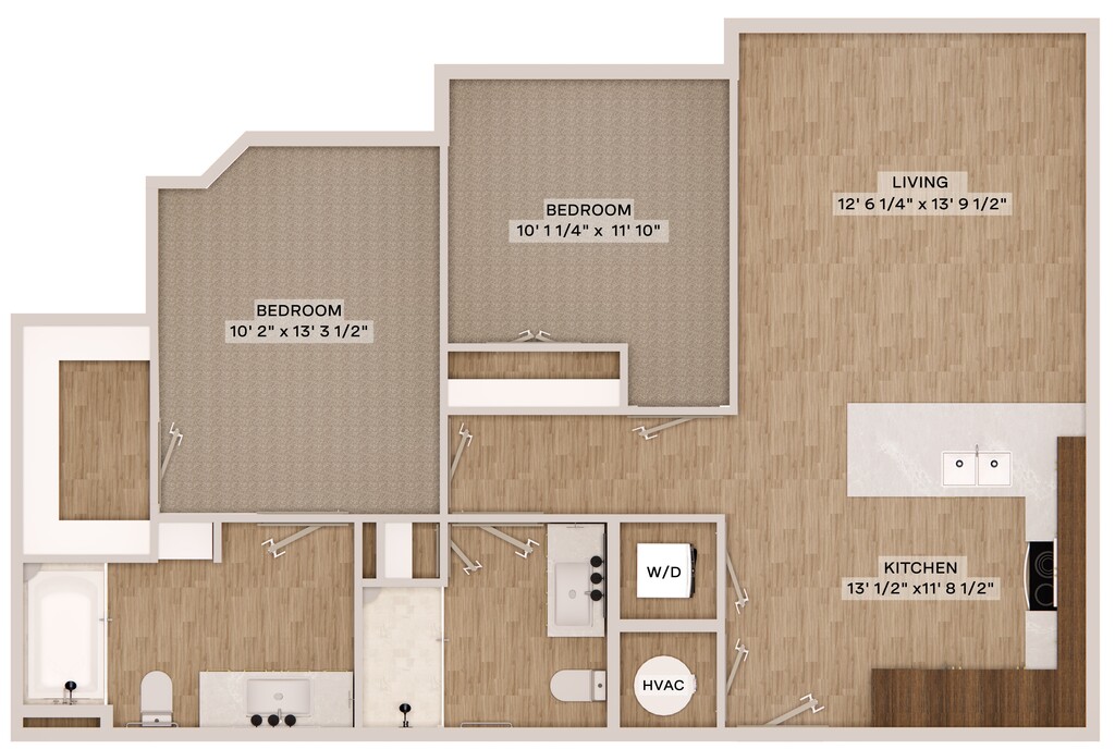 Studio to 2 Bedroom Apartments at EVIVA Trinity Mills Station currently range from $1,285 to $2,820