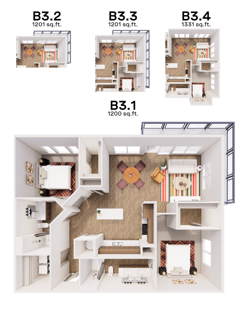 EVIVA Trinity Mills Station offers Studio to 2 Bedroom apartments starting from $1,285 and having 450–1,331 sq ft. Here is the current pricing and availability: