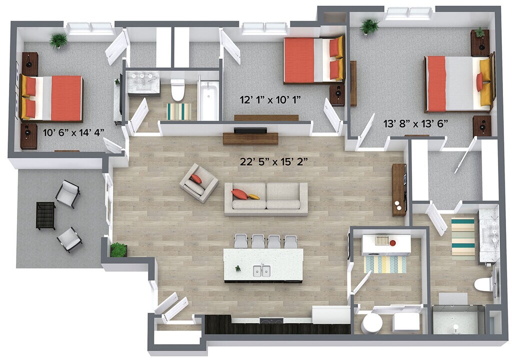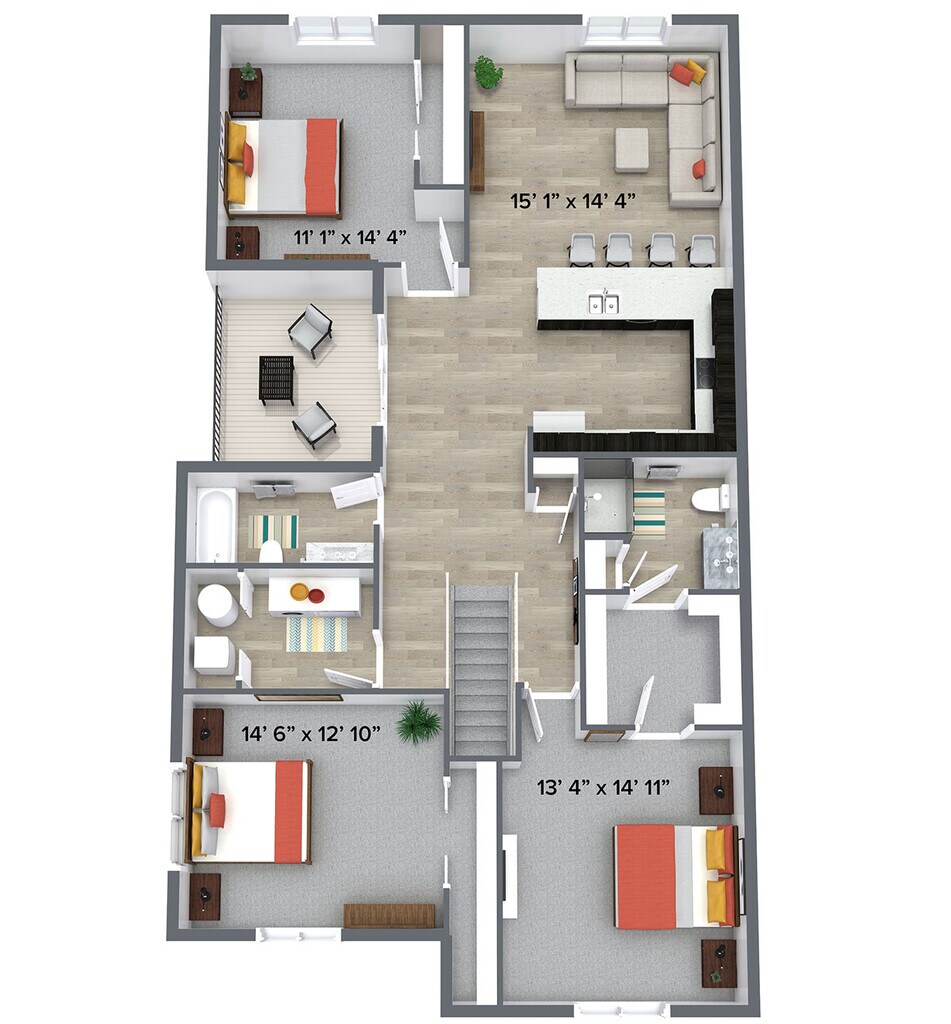 - 3 BedroomsShow Unavailable Floorplans- Elevate- From $2,2153 Beds, 2 Baths, 1524 sq ftAvailable NowLargest 3 BedroomThis is the largest 3 Bedroom at this Property- Model Gallery- Floorplans- Photos- Availability Details- Price - Availability Date - Unit - Sq Ft - From $2,215 - Available Now - Elevate - 1524 sq ft - Model Amenities and Features- Unique Features- Fully-Equipped Stainless Steel Kitchens