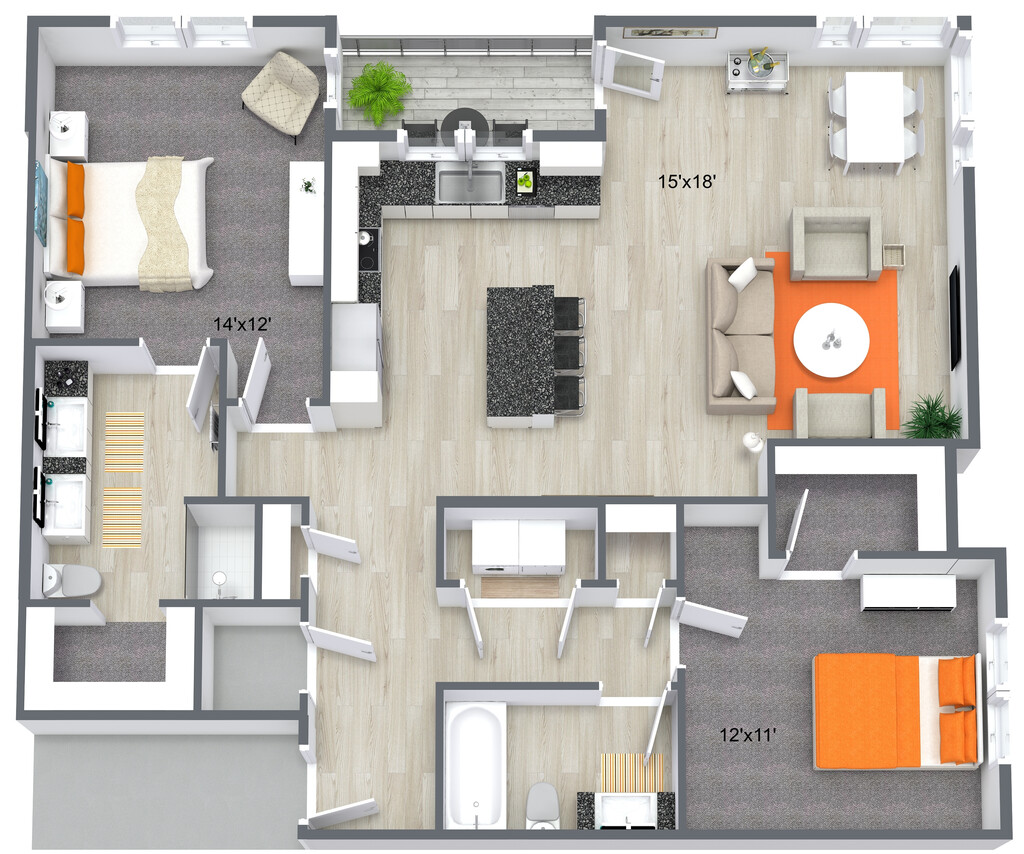 Apartment Model: RadiateFrom $1,7502 Bedroom, 2 Bath, 1125 sq ftUnavailable![]() - Radiate - Floorplan 1