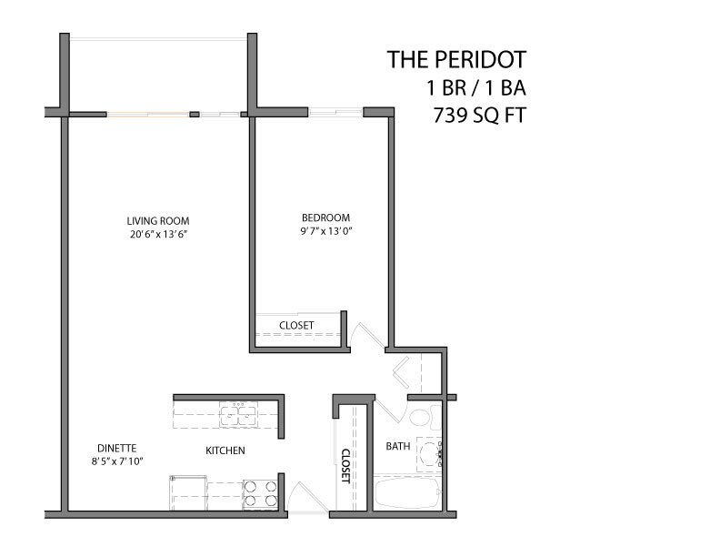 Apartment Model: The PeridotCall For Rates1 Bedroom, 1 Bath, 739 sq ftUnavailable![]()