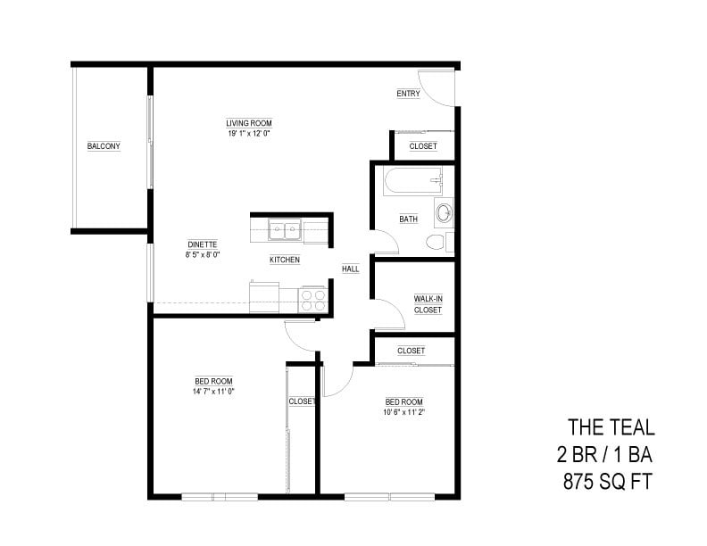 2 Beds, 1 Bath, 875 sq ftPlus FeesAvailable NowModel Gallery