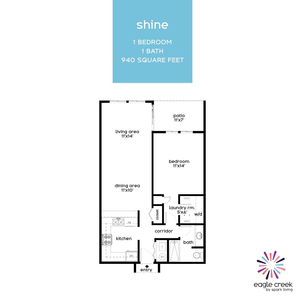 Shine - Floorplan 1 Apartment Unit: G060Apartment Model: 1 Bed, 1 bath$1,0931 Bedroom, 1 Bath, 940 sq ftAvailable Now2 Bedrooms