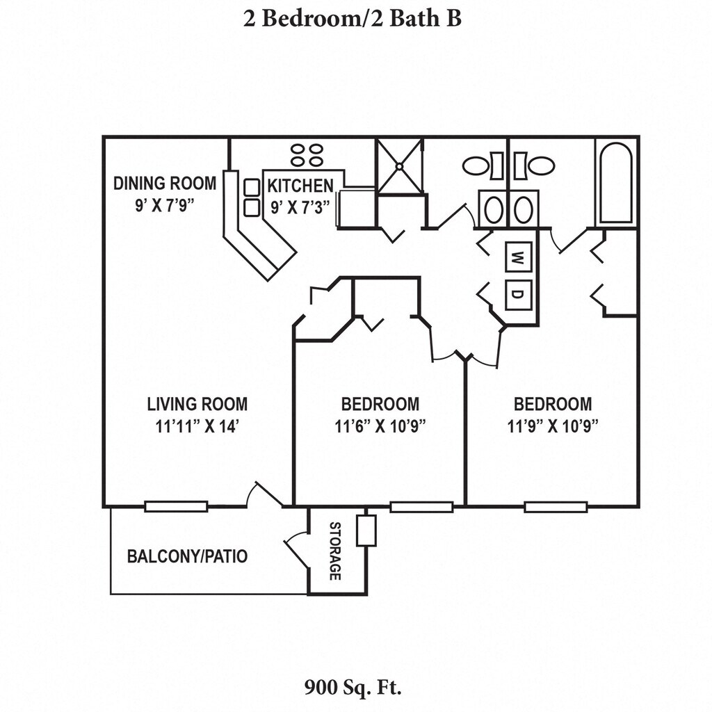 Apartment Model: Two Bedroom Two Bedroom2 Bedroom, 2 Bath, 900 sq ftAvailable November 26, 2025![]()