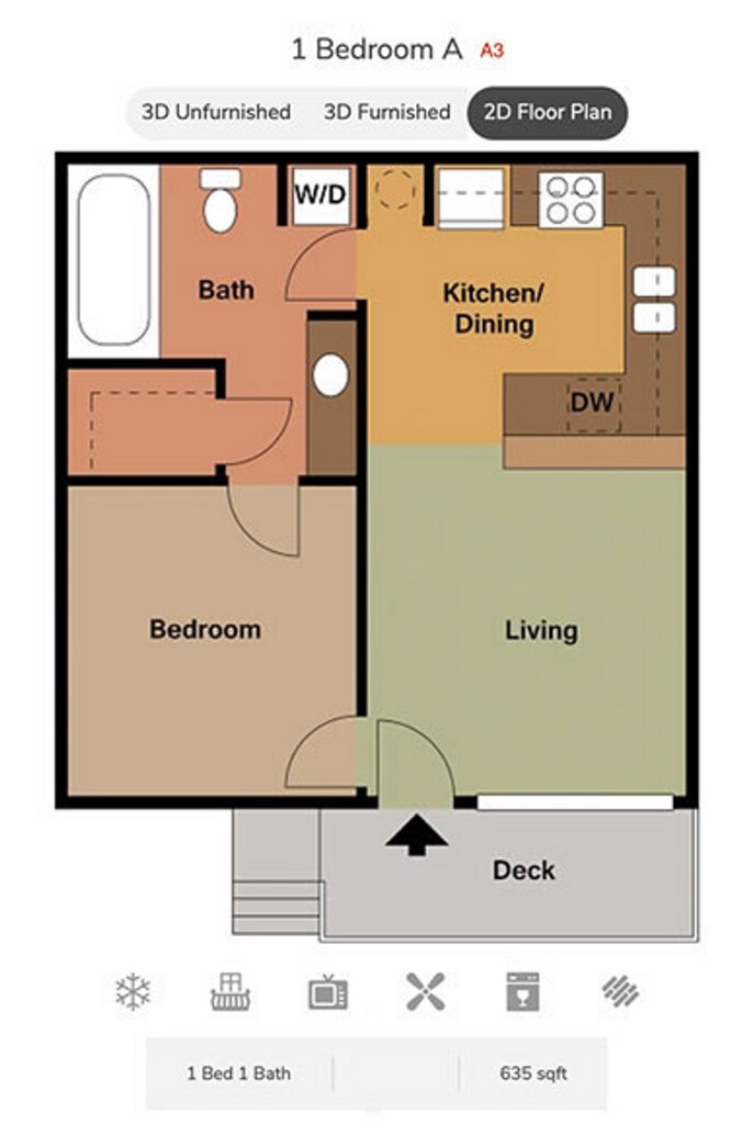 1 Bed, 1 Bath, 635 sq ftAvailable NowModel Gallery