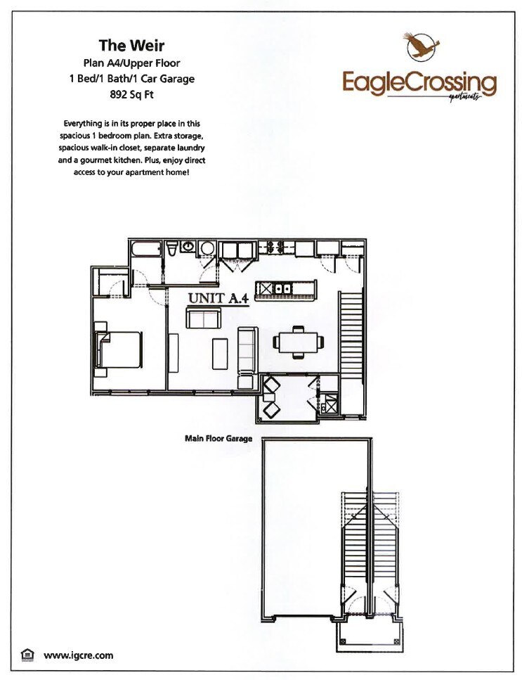 Apartment Model: A.4 Weir$1,5861 Bedroom, 1 Bath, 892 sq ftUnavailableA.4 Weir - Floorplan 1 A.4 Weir - Floorplan 2 A.3-1x1 Creekside