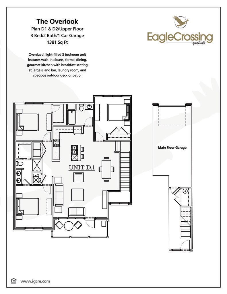 Eagle Crossing Luxury Apartment Homes offers 1 to 3 Bedroom apartments starting from $1,601 and having 852–1,819 sq ft. Here is the current pricing and availability: