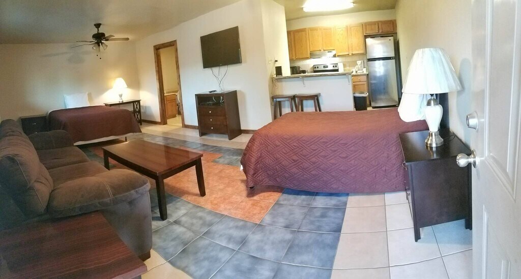 Our 26 unit apartment complex in Three Rivers, TX is situated in a quiet, residential location. We proudly offer plush furnished apartments with all bills paid. Your unit will come with two beds in each apartment or one bed in the studios. Each apartment is designed with custom tile throughout and features a breakfast bar with stools. Cook like a chef in your full size gourmet kitchen with pantry. Your rate includes internet and cable and flat screen TV. This building was built with double wall construction in a quiet location off of the main highway. The restroom boasts plenty of closet space and private water heater for nice, hot showers. We prefer 6 month leases, but will make a unit available for as little as a 1 month stay, although the monthly payment will be a little higher.